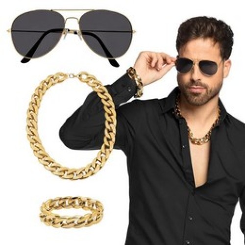 pimp csávó szett 3 részes nyaklánc, karkötő, szemüveg, műanyag